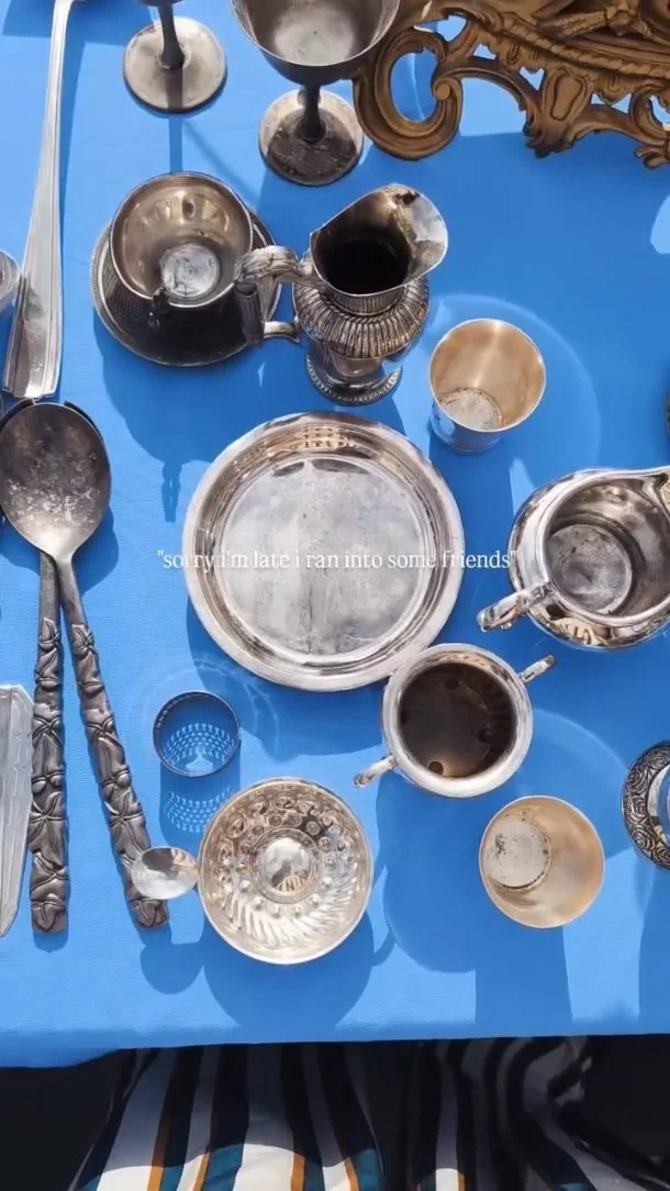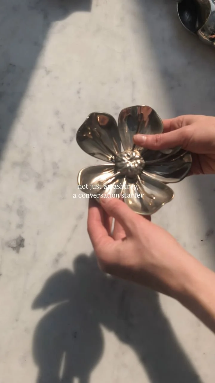 This silver-plated floral ashtray through a removable sculptural element. The piece is composed of fluted, high-shine petals gathered around a textured central socket, balancing botanical softness with the cool precision of metalwork. Both decorative and subversively functional.